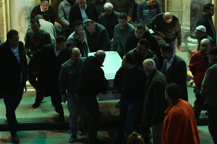 يسرا وصلاح عبد الله وعمرو يوسف في عزاء شقيقة عادل إمام
