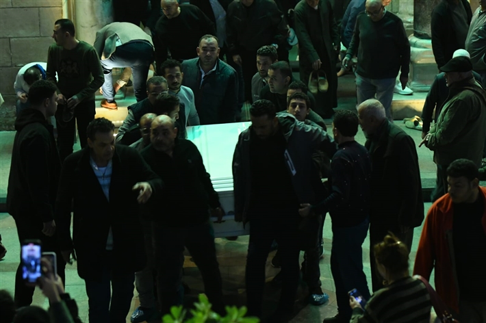 ليست المرة الأولى ... أحمد الفيشاوي ينفعل على المصورين في عزاء والدته سمية الألفي