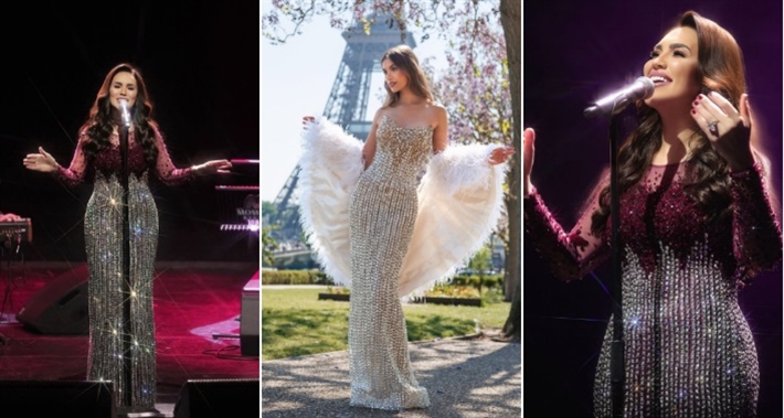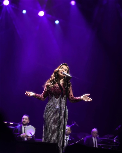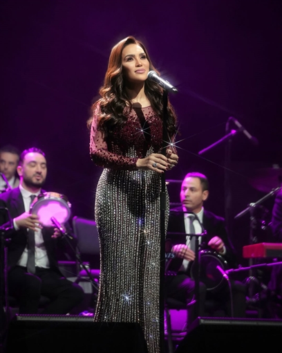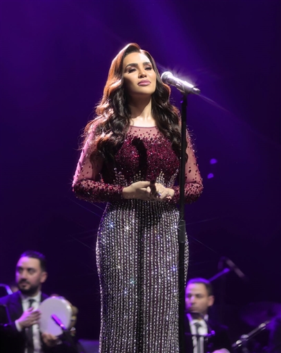 مي فاروق بفستان مرصع يدويا بـ5 آلاف كريستالة من تصميم أيمن لحموني في حفلها الأول بأوبرا دبي