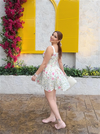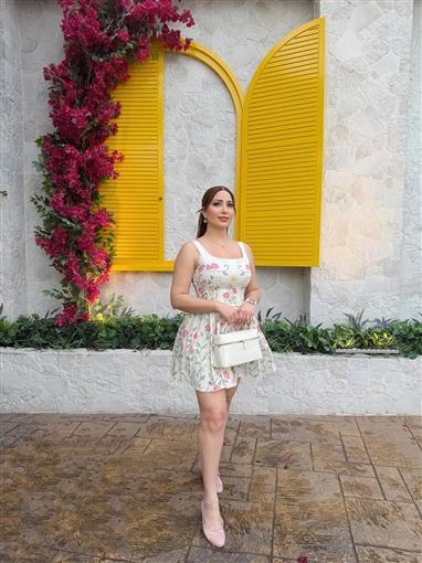 وأطلت نسرين طافش في جلسة التصوير بفستان أبيض قصير أبرز رشاقتها، تميز برسوم نباتات وأزهار، مع مكياج أنيق، وتركت شعرها ينسدل في خصلة واحدة، وأضافت لإطلالتها حقيبة بيضاء أنيقة.