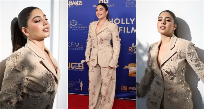 اختارت مايان السيد بدلة باللون "البيج" للظهور على السجادة الحمراء للمهرجان