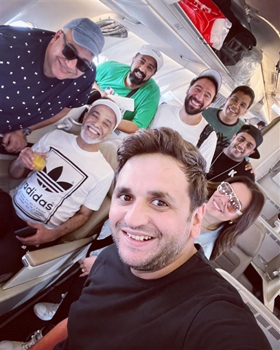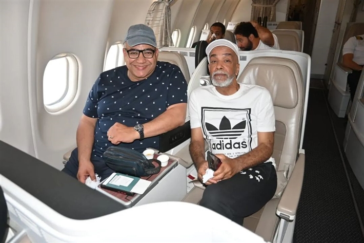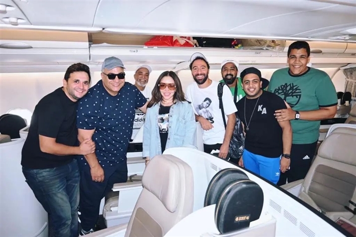 وحرص الفنان مصطفى خاطر على نشر صورا برفقة أسرة مسرحية "عائلة تس"، توثيقًا للحظات سفرهم سويا في الطائرة.