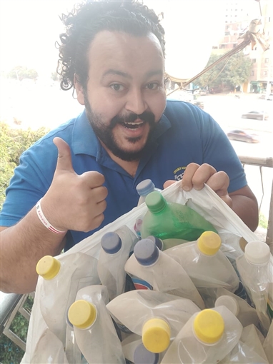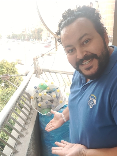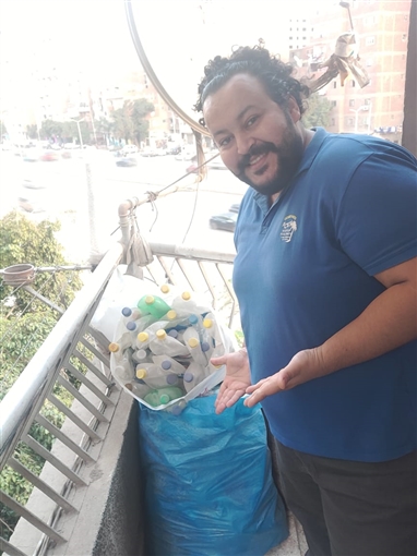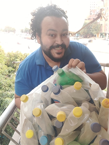 وأضاف: "بدأت بالذات مع البلاستيك وحضرت شنطة في البلكونة وبقيت اجمع فيها المخلفات البلاستيك زي زجاجات الحاجة الساقعة وعلب الزبادي والايس كريم والشاور جيل".