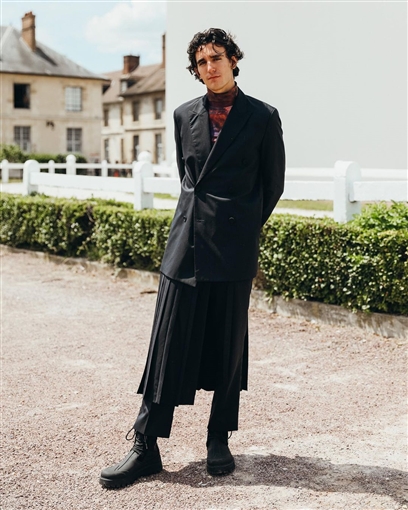 أحفاد محرم فؤادواختار تامينو ارتداء بدلة سوداء في عرض Dior، وجاء البنطلون بتصميم مختلف، ومزود بجزء يشبه التنورة ذات الكسرات في الجانب الأيمن.