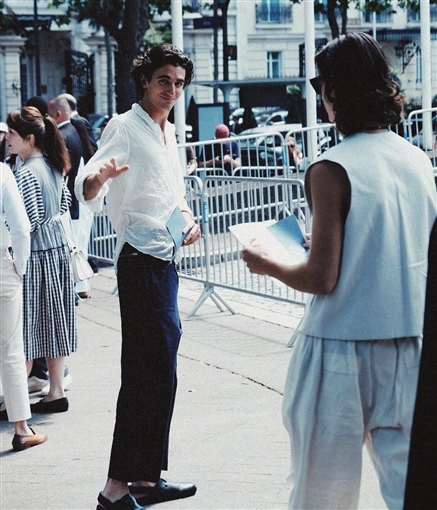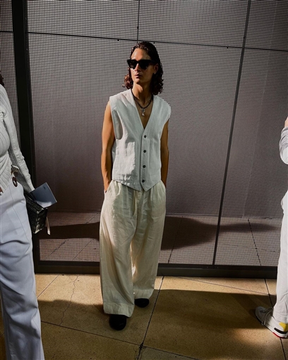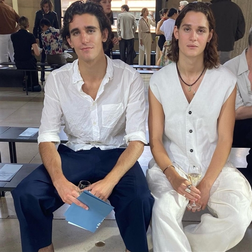 أما في عرض Hermès، ارتدى قميصا أبيض اللون مكرمش، على بنطلون أسود، وارتدى شقيقه رامي صدرية وبنطلون واسع من الكتان، كلاهما باللون العاجي.