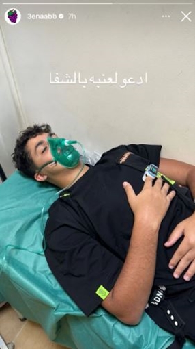 ونشر عنبة ستوري له عبر حسابه الرسمي على Instgram وهو على السرير في أحد المستشفيات.