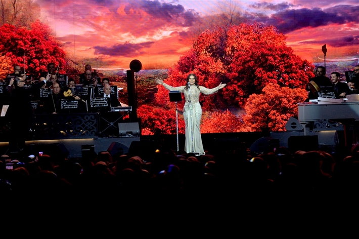 أحلامبدت أحلام في حالة من السعادة والفرح وهي تقف على المسرح لتطرب جمهورها الكبير بصوتها الدافئ العذب، وبإطلالتها الأنيقة، وموهبتها الموسيقية وثقافتها الأدبية، وموضوعات أغانيها.