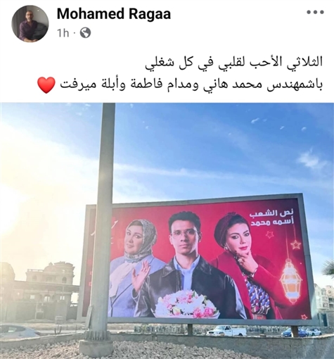 وكتب محمد رجاء في التعليق على الملصق الدعائي: "الثلاثي الأحب لقلبي في كل شغلي. باشمهندس محمد هاني ومدام فاطمة وأبلة ميرفت".