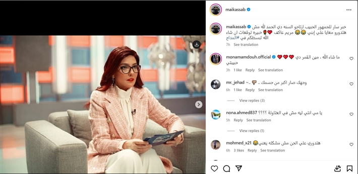 مي كساب تكشف عن شخصية جديدة تقدمها في الجزء الخامس من مسلسل "المداح"وداعبت مي الجمهور في منشورها بجملة: "خبر سار للجمهور الحبيب ارتاحو السنه دي الحمد لله مش هتدورو معايا علي إبني" ... بعدما ظهرت في عملين دراميين تبحث عن ابنها وهما: "جعفر العمدة"، و"العتاولة" الذي اكتشفت في أحداثه أن ابنها ذو الخمس سنوات ليس ابنها، وأنه تم تبديله مع ابن أسرة ثرية في المستشفى عند الولادة.