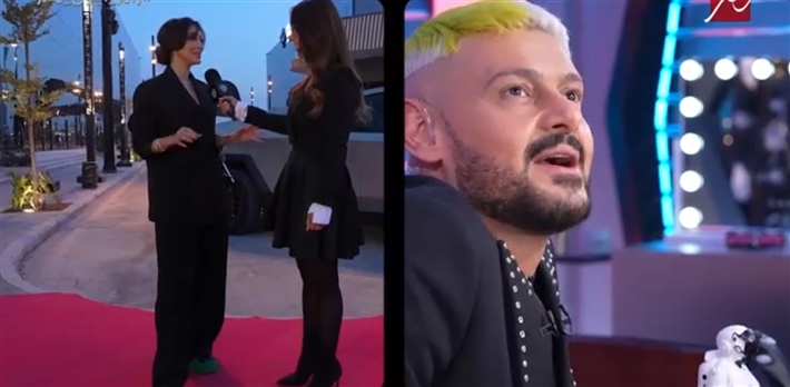 وتابع رامز: "إيه الأخضر اللي في الجزمة ده؟ أكيد نزلت في ملوخية، عاملة قصة هاني البحيري، والبدلة دي شوفتها على ليدي جاجا، وهي لابساها بقت ليدي كاكا، واللي في إيديها ده شنطة ولا كلبشات؟ وهي طالعة من الأسانسير تحس إنها رايحة تزور تامر حسني بعد ما الدنابل وقعت عليه في الجيم".