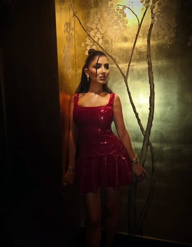 شرطة_الموضة: مي عمر بفستان أحمر قصير بحمالات ... سعره 24 ألف جنيه