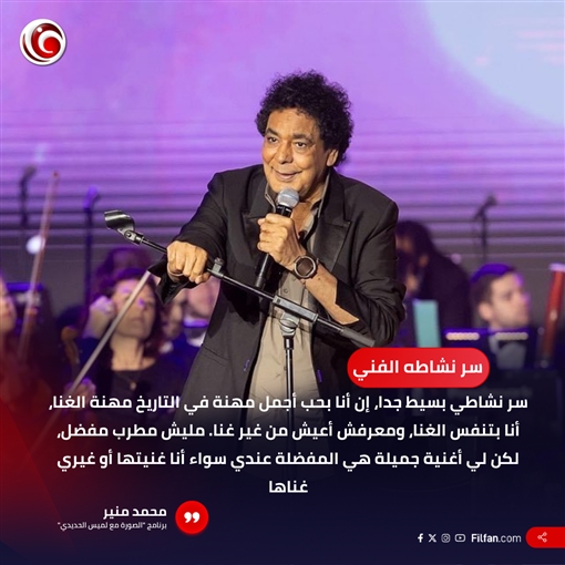 في البداية تحدث منير عن سر نشاطه الفني في الفترة الأخيرة قائلا: "سر استمرار الوهج والنشاط هو أن الغناء أجمل مهنة في التاريخ، وأنا أتنفس الغناء، ولا أستطيع أن أعيش من دونه. دائمًا أقول: ليس لدي مطرب مفضل، لكن لديّ أغنية مفضلة، سواء غنيتها أنا أو غناها أحد الزملاء."