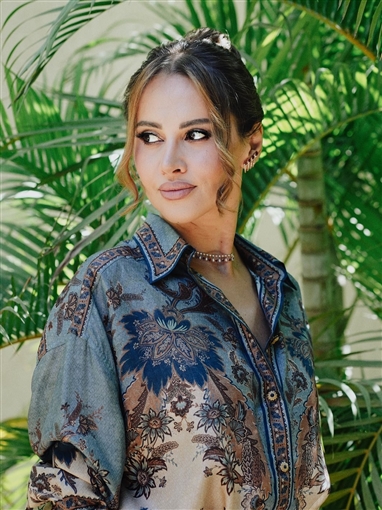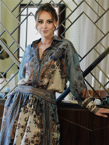 أيتن عامر تتألق بإطلالة زرقاء لامعة في جلسة تصوير جديدة