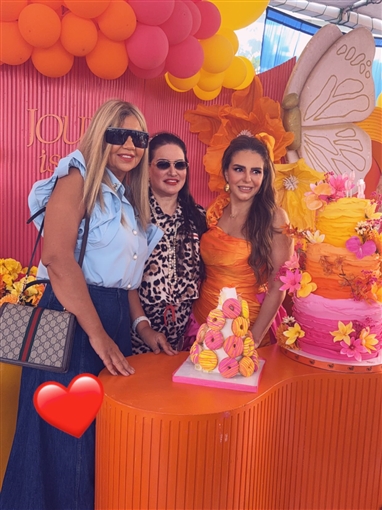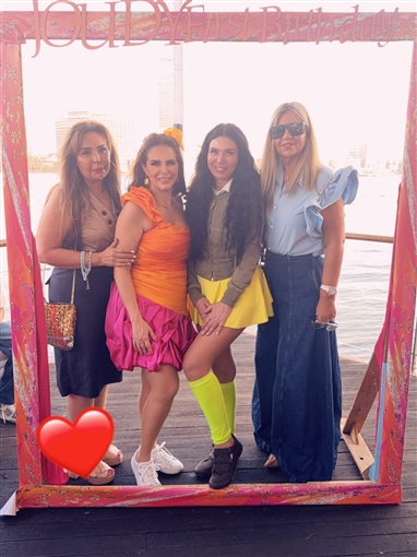 دنيا عبد العزيز تحتفل بعيد ميلاد ابنتهاوغلب على مكان الاحتفال ألوان البرتقالي والوردي كما ارتدت دنيا عبد العزيز هذه الألوان وقدمت دينا رقصة خاصة للحضور.