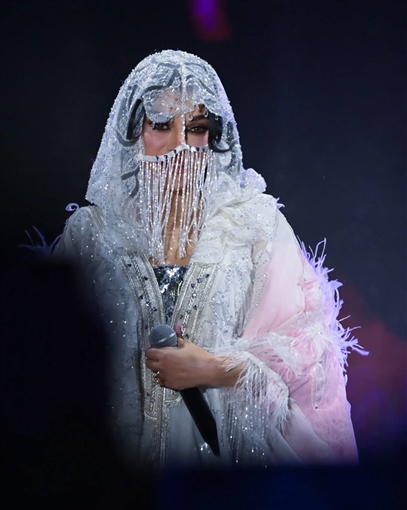 وارتدت هيفاء وهبي فستانا فضيا لامعا باللون الفضي مع أكمام من الريش، وخلال الحفل ظهرت على المسرح وهي ترتدي برقع وعباءة، وغنت مع فرقة سعودية أغنيتها الشهيرة "أقول أهواك".