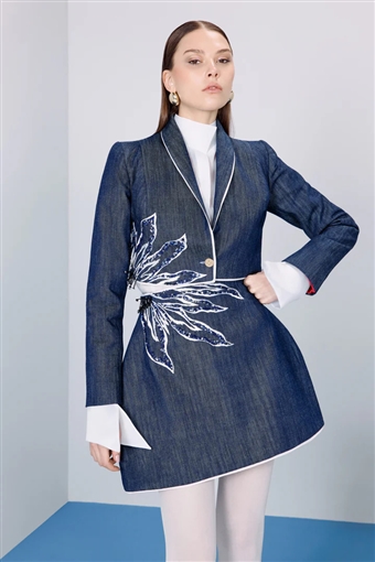 ظهرت صبا مبارك على السجادة الحمراء وهي ترتدي تايور من الجينز بتنورة قصيرة وجاكيت Cropped Jacket مزينة بتطريز زهور معقد لإطلالة أنيقة ومرحة، من تصميم سارة مراد، ويصل سعره إلى 1500 دولار أي ما يعادل 57 ألف جنيه، شاهده من موقع بيعه.