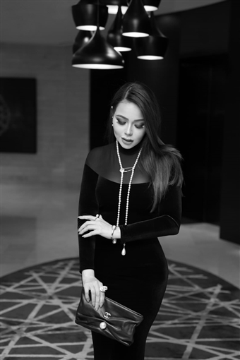 واعتمدت أسما في هذه الإطلالة على اللؤلؤ كعنوان للفخامة، فنسّقت عقداً طويلاً من CHANEL يتدلّى بانسيابية واضحة، إلى جانب أقراط اللؤلؤ التي أبرزت ملامحها الناعمة، مع خاتمين بتفاصيل لؤلؤية لافتة.