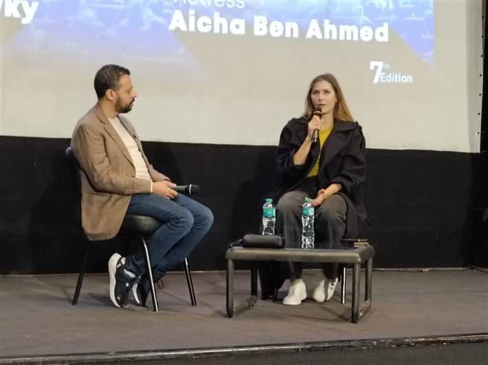 ضمن فعاليات الدورة السابعة من مهرجان القاهرة الدولي للفيلم القصير، استضاف مركز الإبداع الفني بدار الأوبرا المصرية حوارا مفتوحا جمع النجمة التونسية عائشة بن أحمد مع الناقد السينمائي أحمد شوقي، في لقاء إنساني وفني كشفت خلاله عن محطات مهمة في مسيرتها، وتفاصيل شخصية عن رحلتها بين تونس ومصر.