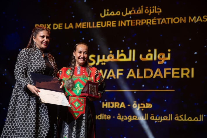 بطلة الفيلم خيرية نظمي تتسلم جائزة (أحسن ممثل) لنواف الظفيري من أيام قرطاج السينمائيةوواصلت: التعاون المشترك مع محمد الدراجي ومحمد حفظي للوصول بهذا الفيلم إلى المستوى العالمي، الذي يتواكب مع فوزه في مهرجان البندقية (فينيسيا)، وحصوله على جائزتين في مهرجان البحر الأحمر السينمائي، وهو مصدر فخر لي. وأخيراً، مشاركتي في مهرجان قرطاج للمرة الثانية وحصولي على جائزتين منه".