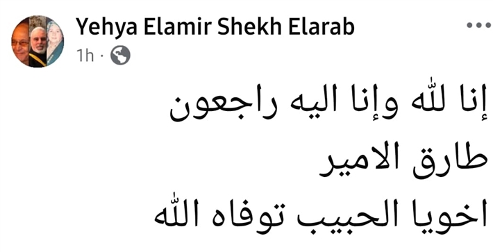 وأعلن الخبر شقيقه وكتب: "إنا لله وإنا إليه راجعون طارق الأمير أخويا الحبيب توفاه الله".