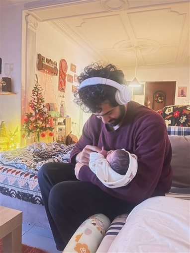 نشرت ثراء جبيل صورة زوجها مختار الديناري وهو يحمل ابنتهما، ولم تكشف عن ملامحها.