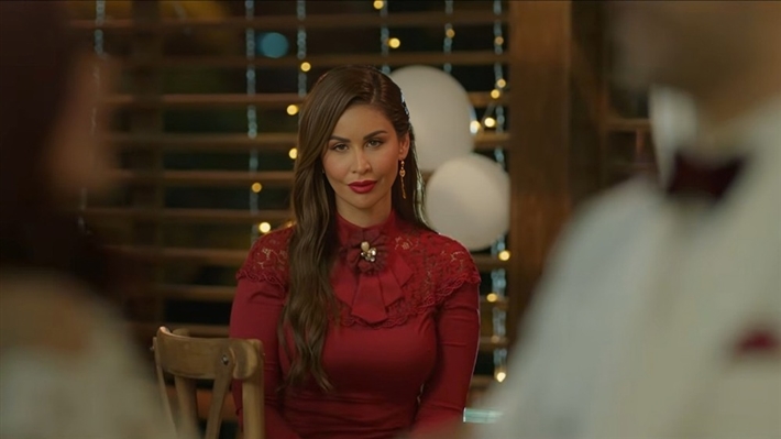 نسرين طافش بفستان أحمر من القطيفة في جلسة تصوير احتفالا بعيد الحب وعيد ميلادها