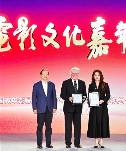 كرّم الوزير الصيني شين هايشيونغ، رئيس مجموعة الصين للإعلام (CMG)، الفنان الكبير حسين فهمي، رئيس مهرجان القاهرة السينمائي الدولي، خلال فعاليات "كرنفال ثقافة السينما في دلتا نهر يانغتسي 2026" المنعقد في مدينة نينغبو بمقاطعة تشجيانغ في جمهورية الصين الشعبية، والتي ينظمها مجموعة الصين للإعلام بالتعاون مع لجنة الحزب بمقاطعة تشجيانغ.