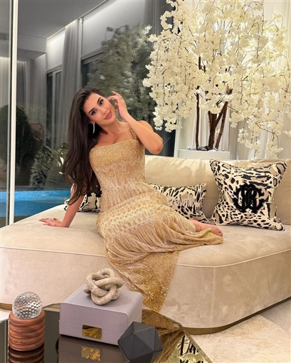 اختارت النجمة ياسمين صبري فستانا ذهبيا من تصميم جان بيار خوري، بلون ذهبي لمجموعته للأزياء الراقية لربيع وصيف 2026، لحضور حفل زفاف عهد ابنة محمد السعدي رئيس مجلس إدارة المتحدة.