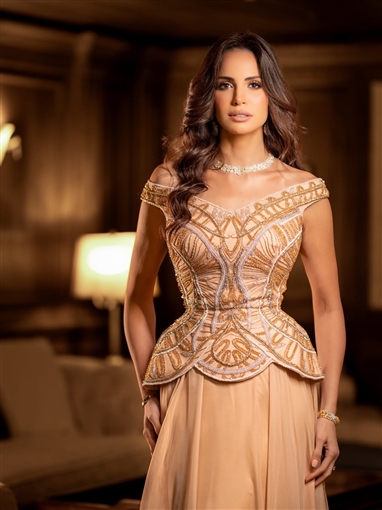 مصمما فستان "أم العريس" لميس الحديدي: مطرز بكريستالات ذهبية واستغرق تنفيذه 3 أشهر