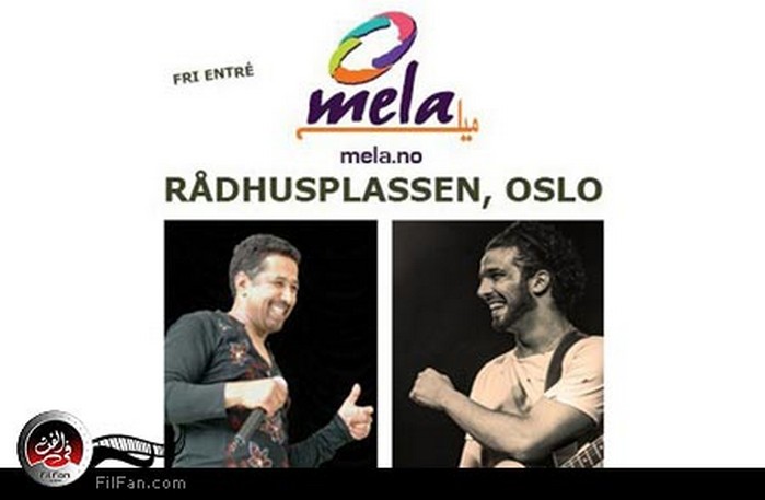 يغني المطرب الشاب رامي عصام مع النجم الجزائري خالد، في إحدى حفلات مهرجان "ميلا" 2012 بالعاصمة النرويجية أوسلو.
