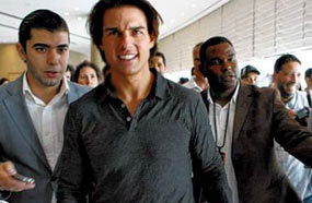 يصارع النجم العالمي توم كروز الوقت، من أجل حضور الدربي الشهير، بين فريقي مانشستر يونايتد ومانشستر سيتي.