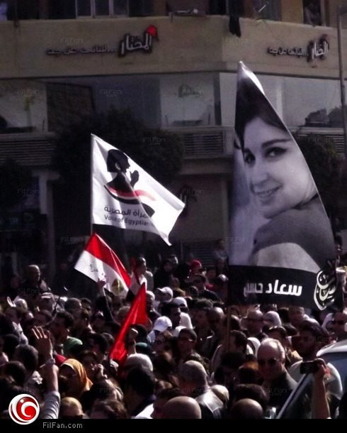 ورفعت حركة "المرأة المصرية" صورة بالحجم الكبير للفنانة الراحلة، تعبيرا عن حق المرأة في التعبير عن رأيها، والتذكير بوجود نماذج لنساء مصريات ناجحات.