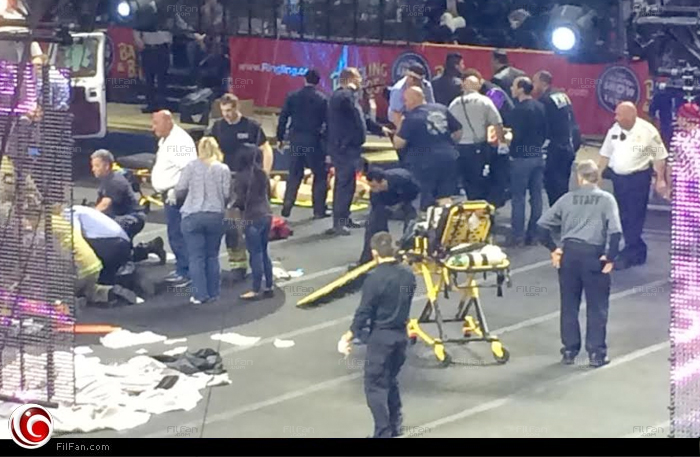 حادث مؤسف شهده سيرك "Barnum & Bailey " في بروفيدنس عاصمة ولاية رود آيلاند بالولايات المتحدة الأمريكية، بعد سقوط 8 لاعبات أكروبات من الحلقة التي كن يتدلين منها، مساء الأحد 4 مايو، وسط دهشة الآلف من المتفرجين.