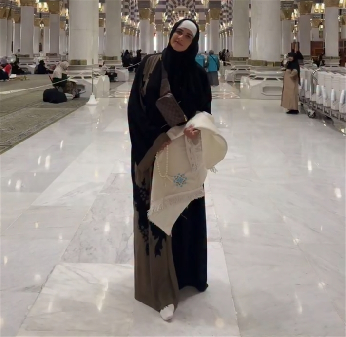 ظهرت ياسمين عبد العزيز في الفيديو خلال زيارتها للحرم المكي والمسجد النبوي، ونالت إطلالتها إعجاب جمهورها.
