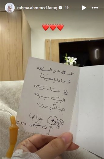 نشرت رحمة أحمد رسالة صاصا عبر خاصية Storeis بتطبيق Instagram، وجاء بها: "حمدلله على السلامة يا ماما يا حبيبتنا، يلا عشان ترجعي البيت بسرعة، جبنا لك ورد".