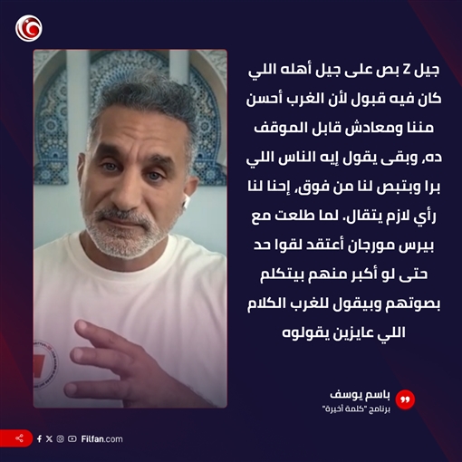 لقاء باسم يوسف في كلمة أخيرةتحدث باسم يوسف خلال اللقاء عن شعبيته وسط جيل Z قائلا: "جيل Z بص على جيل أهله اللي كان فيه قبول لأن الغرب أحسن مننا ومعادش قابل الموقف ده، وبقى يقول إيه الناس اللي برا وبتبص لنا من فوق، إحنا لنا رأي لازم يتقال. لما طلعت مع بيرس مورجان أعتقد لقوا حد حتى لو أكبر منهم بيتكلم بصوتهم وبيقول للغرب الكلام اللي عايزين يقولوه".