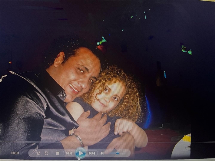 ماس في طفولتها مع والدهاواختتمت ماس محمد رحيم رسالتها: "أنا فقدت روحي ونفسي وإحساسي وإدراكي وشغفي لما انت مشيت ولكن كل مرة بفتكرك فيها والله والله بيرجعولي تاني، ولو حد عايزني في حاجة بجد يحلفني بعيونك، ذكرى أليمة وبتوجعني وبتحطمني ولكن كفاية عندي إني بفتكرك انت، ورب العالمين رزقني بيك وخلاني بنتك وخلى حبك في قلبي كبير كدا عشان توحشني أوي أوي أوي أوي كدا. ادعوا لقلبي بالرحمة والمغفرة".