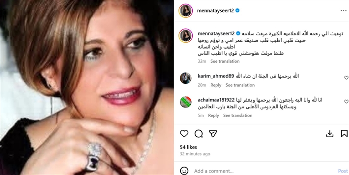 منة بدر تيسير تعلن وفاة ميرفت سلامة