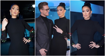 #شرطة_الموضة: غادة عبد الرازق بفستان مخملي أسود مطرز باللؤلؤ من تصميم سامو هجرس منذ عامين شرطة الموضة