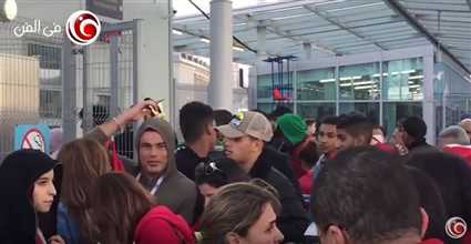 دينا الشربيني تخبئ وجه عمرو دياب من الجمهور في مباراة مصر وروسيا