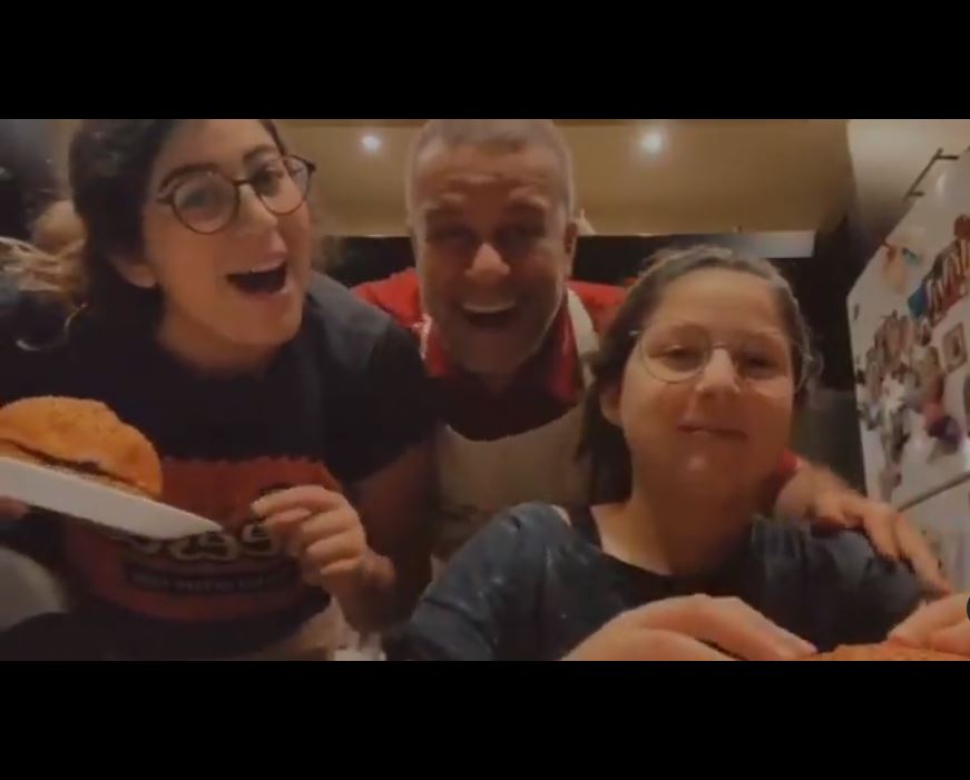 شريف منير يستمتع بتحضير البرجر مع ابنتيه على أغنية Abba منذ 4 أعوام