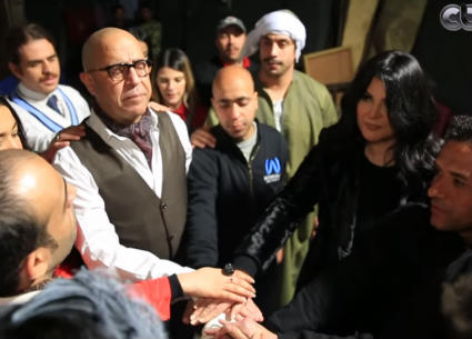 منى الشاذلي تقرأ الفاتحة مع أشرف عبد الباقي وفرقته