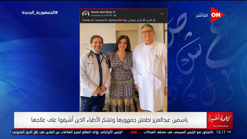 لميس الحديدي لـ ياسمين عبد العزيز بعد خروجها من المستشفى: حمد الله على سلامة الجميلة