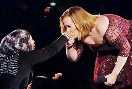 بالفيديو- أديل تقبّل يد فتاة محجبة في حفلها الأخير منذ 8 أعوام موسيقى وحفلات