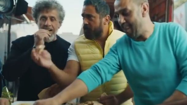 بعدها دخل أمير كرارة فجأة ليزيح سليم من أمام الكاميرا ويتعامل مع نفسه في الإعلان، ويناولها البطاطس.