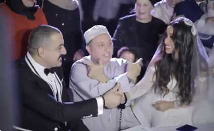 لقطة من عقد قران دياب: يرتبط بزوجته بـ"كلبش" منذ 7 أعوام
